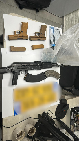 تم ضبط مسدسات وسلاح من نوع كلاشنيكوف، وقُدّمت تصريح مدّعٍ.