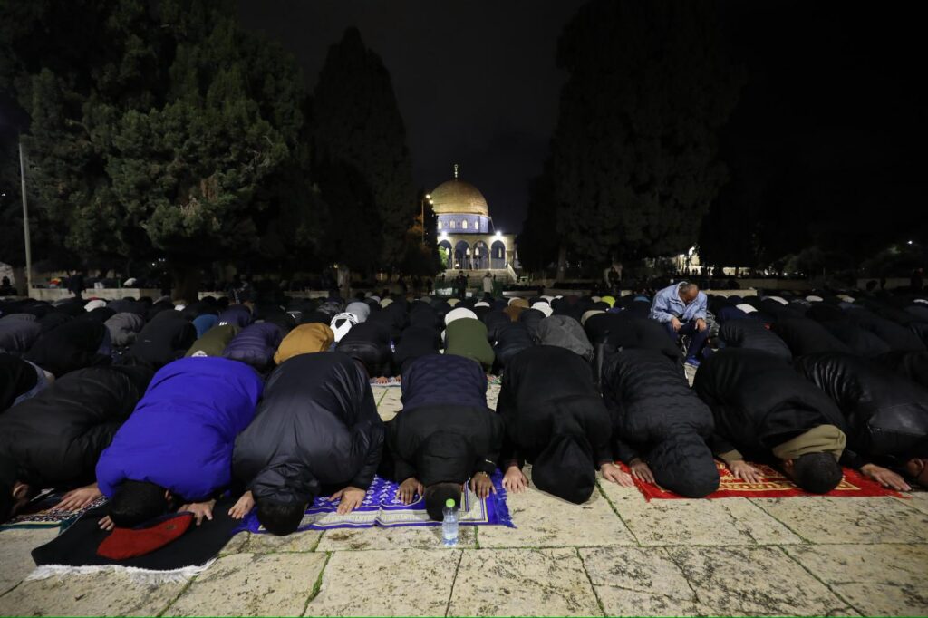 وأفادت دائرة الأوقاف الإسلامية في القدس “بأن عشرات آلاف المصلين توافدوا إلى المسجد الأقصى منذ ساعات المساء، وأدوا صلاتي العشاء والتراويح في باحاته ومصلياته المسقوفة، في مشهد يعكس تمسك أبناء شعبنا بحقهم في الصلاة في أولى القبلتين وثالث الحرمين الشريفين” .