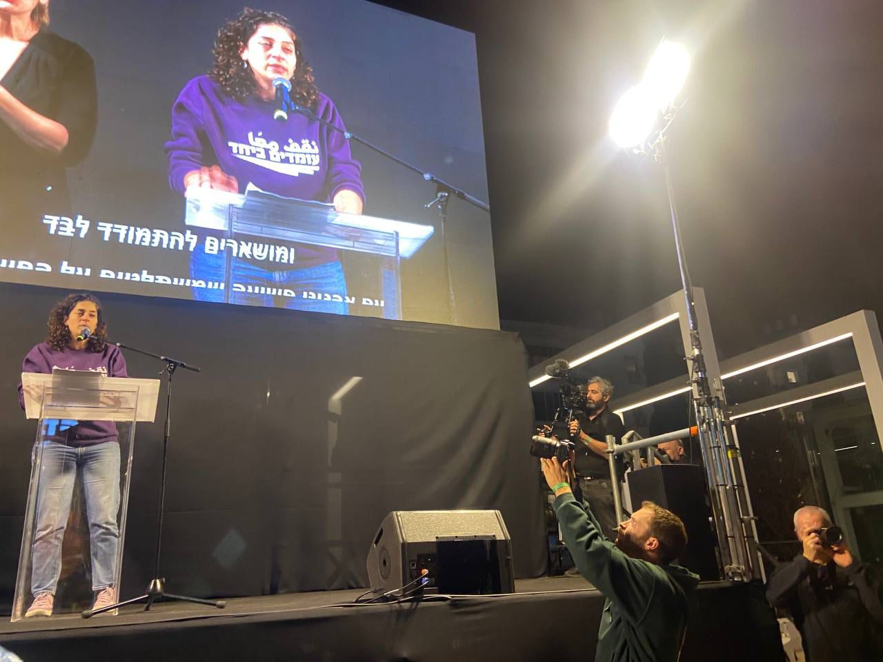 أمام آلاف المتظاهرين في ساحة هبيما في تل أبيب، ألقت رلى داوود، المديرة القطرية المشاركة في حراك “نقف معًا”، خطابًا حادًا ضمن التظاهرة المركزية التي نُظمت مؤخرا في إطار الاحتجاجات ضد الحكومة.