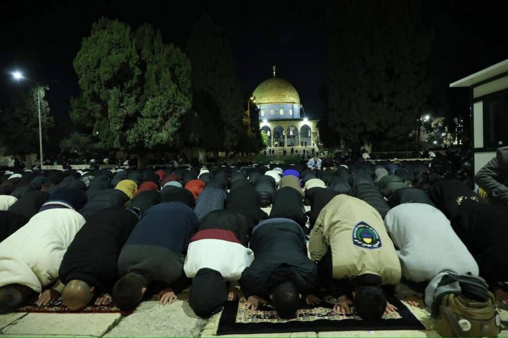 أفادت مصادر فلسطينية أن ” نحو 40 ألف مصلٍ، أدوا مساء الأربعاء، صلاتي العشاء والتراويح في المسجد الأقصى، رغم القيود والإجراءات التي تفرضها السلطات الإسرائيلية على دخول المصلين إلى البلدة القديمة” .