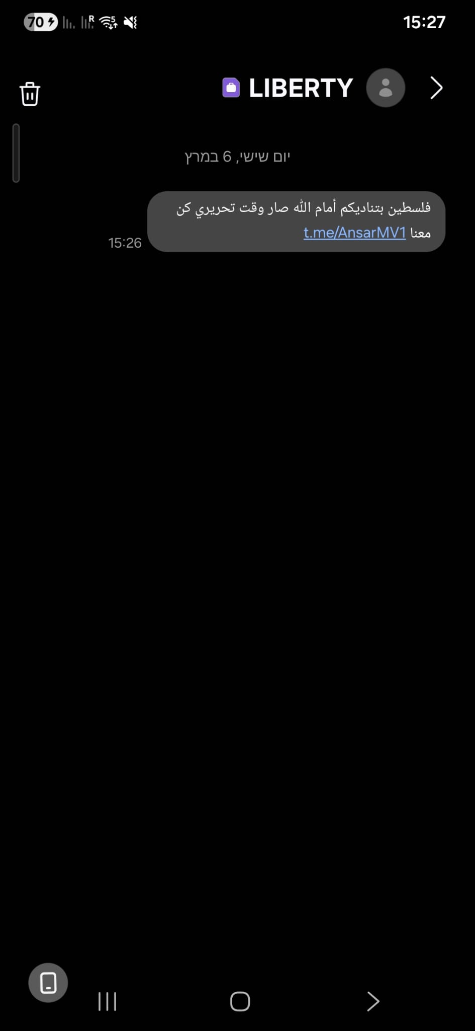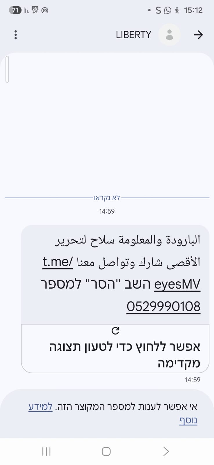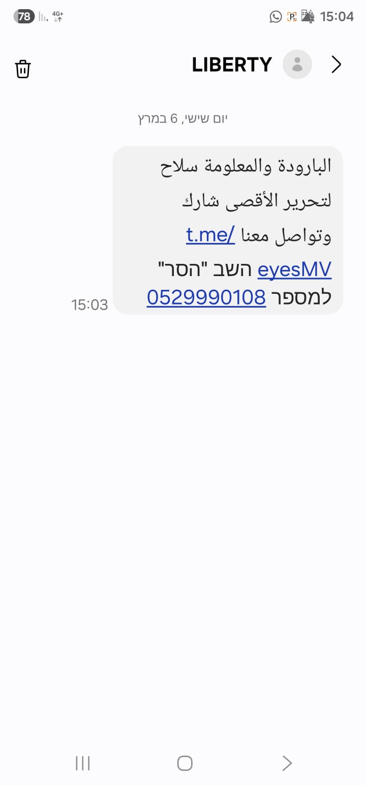 افاد اهال من سكان منطقة الشمال انهم تلقوا في الساعات الأخيرة رسائل نصية قصيرة غريبة تحتوي على شعارات "لتحرير الأقصى".