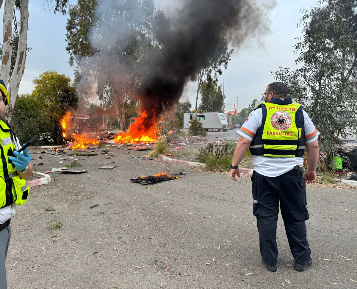 ووصل بيان صادر عن مكتب كايد ظاهر الناطق الرسمي للاعلام العربي في سلطة الإطفاء والإنقاذ جاء فيه: "تعمل 7 طواقم إطفاء وإنقاذ على إخماد حريق والبحث عن عالقين في موقع سقوط شظايا صاروخية".