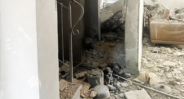 نجمة داوود الحمراء في موقع سقوط شظايا صاروخية بمركز البلاد - تصوير نجمة داوود الحمراء