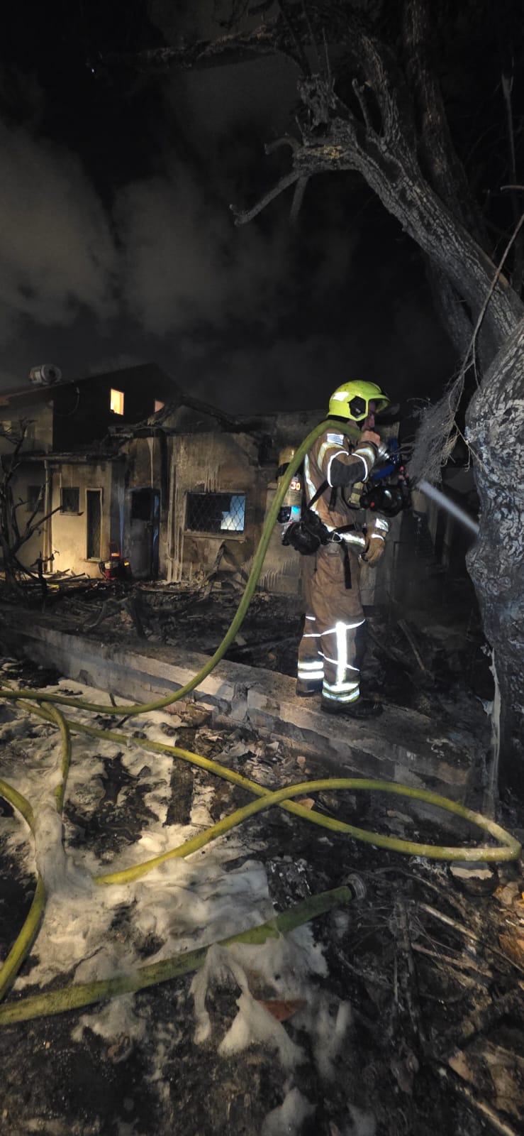 حريق ودمار هائل في موقع سقوط الصاروخ في نهاريا - تصوير نجمة داوود الحمراء
