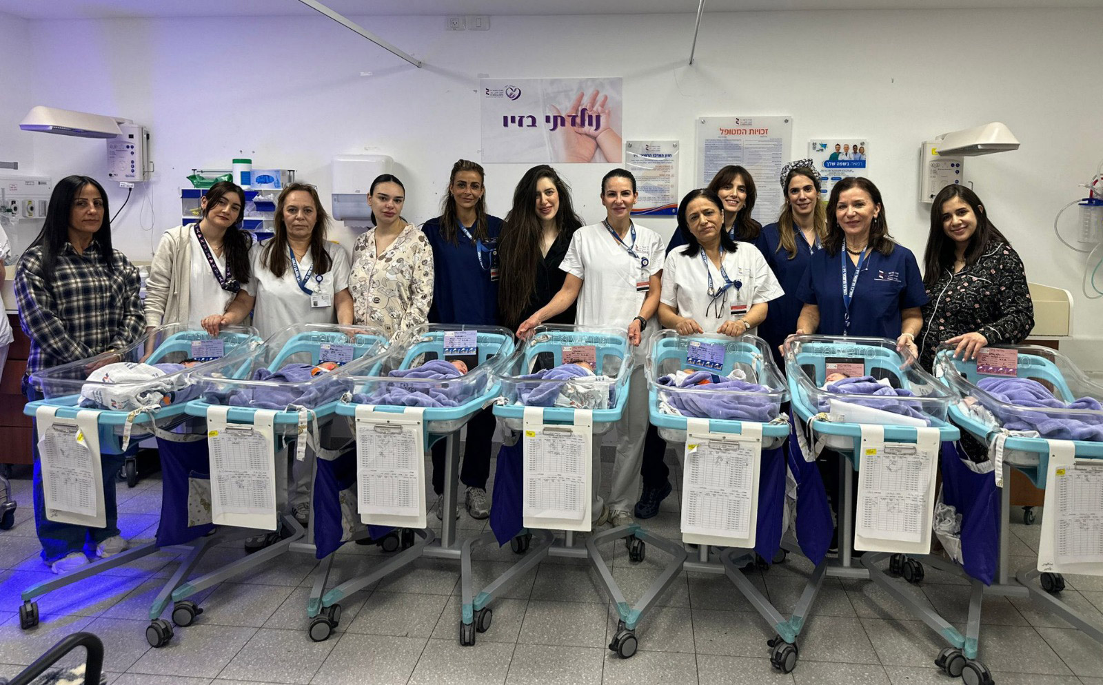 قال المركز الطبي زيڤ في صفد في بيان وصلت نسخة عنه لموقع بانيت وقناة هلا : " بينما تدوي في الخارج أصوات الحرب من الجبهة الشمالية، تُسمع داخل المركز الطبي " زيڤ" أصوات من نوع آخر تماماً، اصوات البكاء الذي يبشر بحياة جديدة.