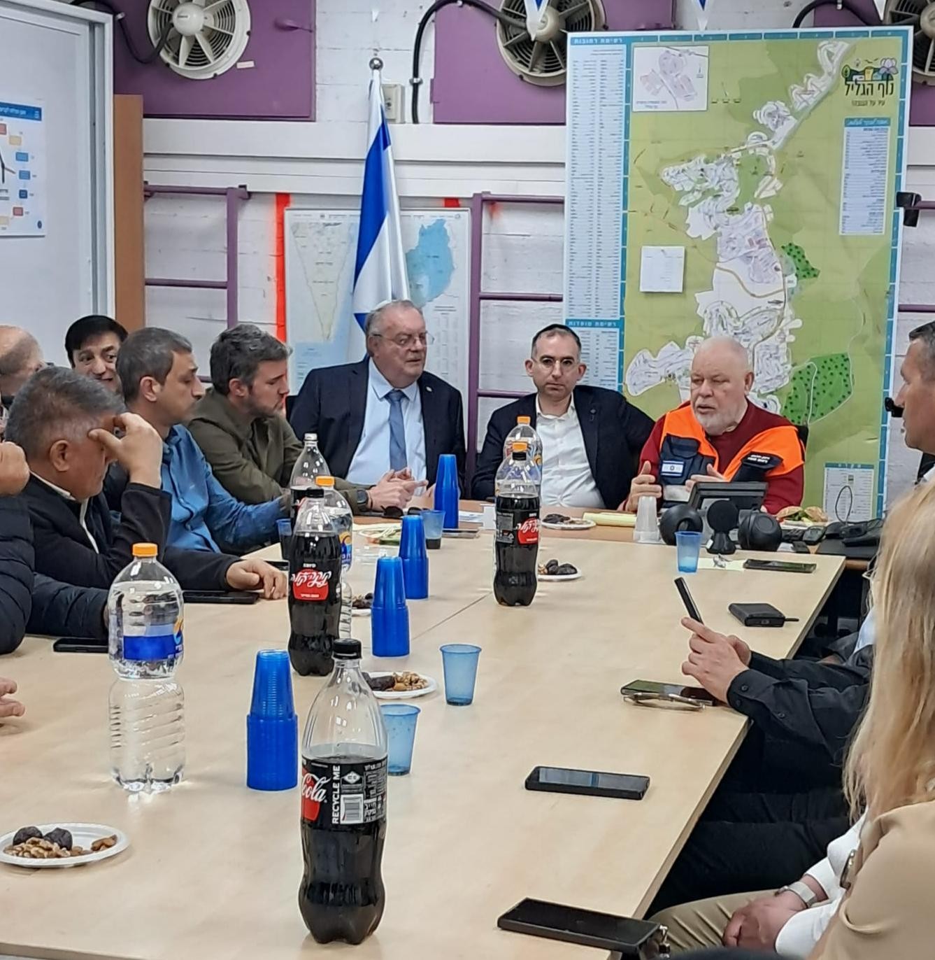 كما شارك في الاجتماع، مفوض خدمات الدولة، البروفيسور دانييل هرشكوبيتس، والمسؤول عن لواء الشمال في وزارة الداخلية، درور سوروكا، ومدير دائرة الطوارئ في وزارة الداخلية، حازي راز.