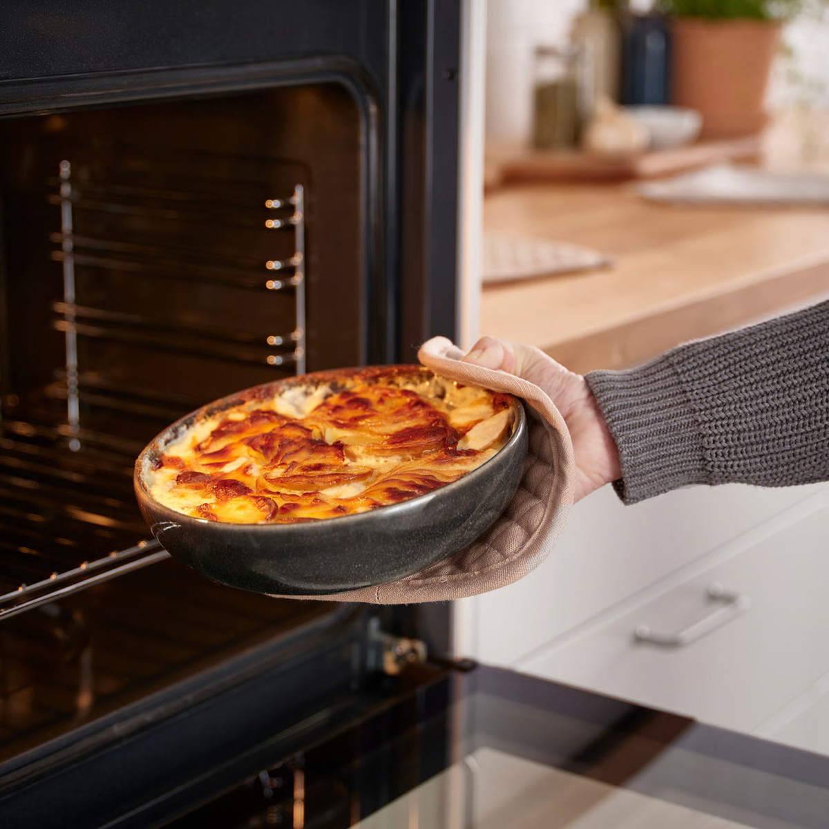 صينية خبز وتقديم GLADELIG بطلاء رمادي داكن يحسّن كل وجبة ويساعدكم على التقديم بأناقة، مباشرة من الفرن إلى المائدة. السعر 59 شيكل