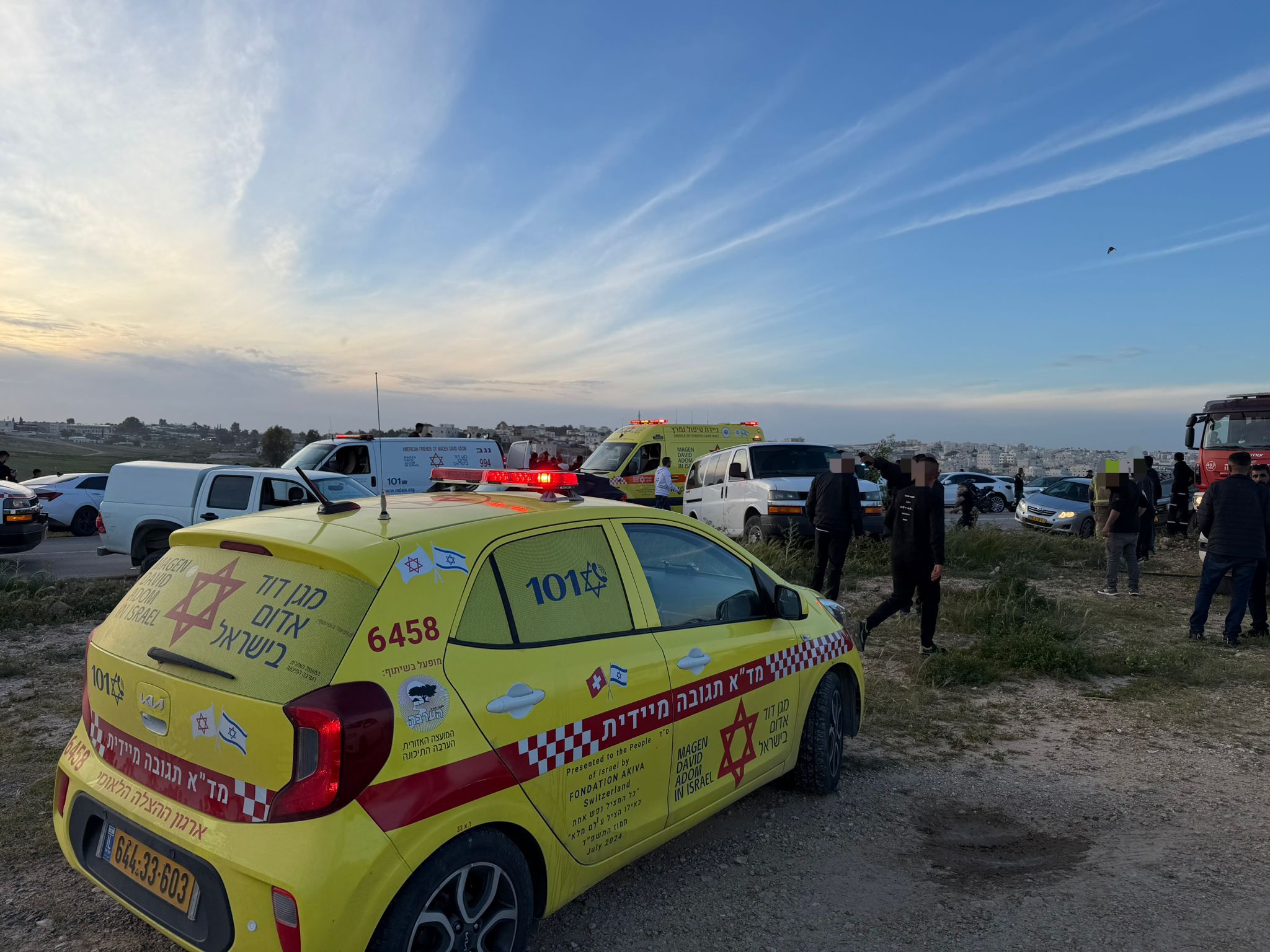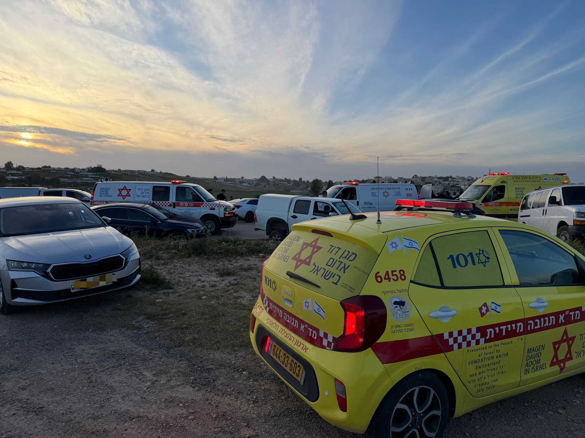 وقال المسعف في نجمة داوود الحمراء، زياد أبو عرار: "إنه حادث صادم وقاتل، حيث اصطدمت ثلاث مركبات ببعضها البعض. عند وصولنا إلى المكان، شاهدنا ثلاثة رجال في الثلاثينيات من العمر فاقدي الوعي ودون علامات حياة نتيجة شدة الإصابة. كما كان هناك مصابان آخران، أيضًا في الثلاثينيات من العمر، في حالة إغماء وبوضع خطير، ويعانيان من إصابات في الرأس والأطراف. قدمنا لهما العلاج الطبي في المكان وقمنا بنقلهما إلى المستشفى لاستكمال العلاج."