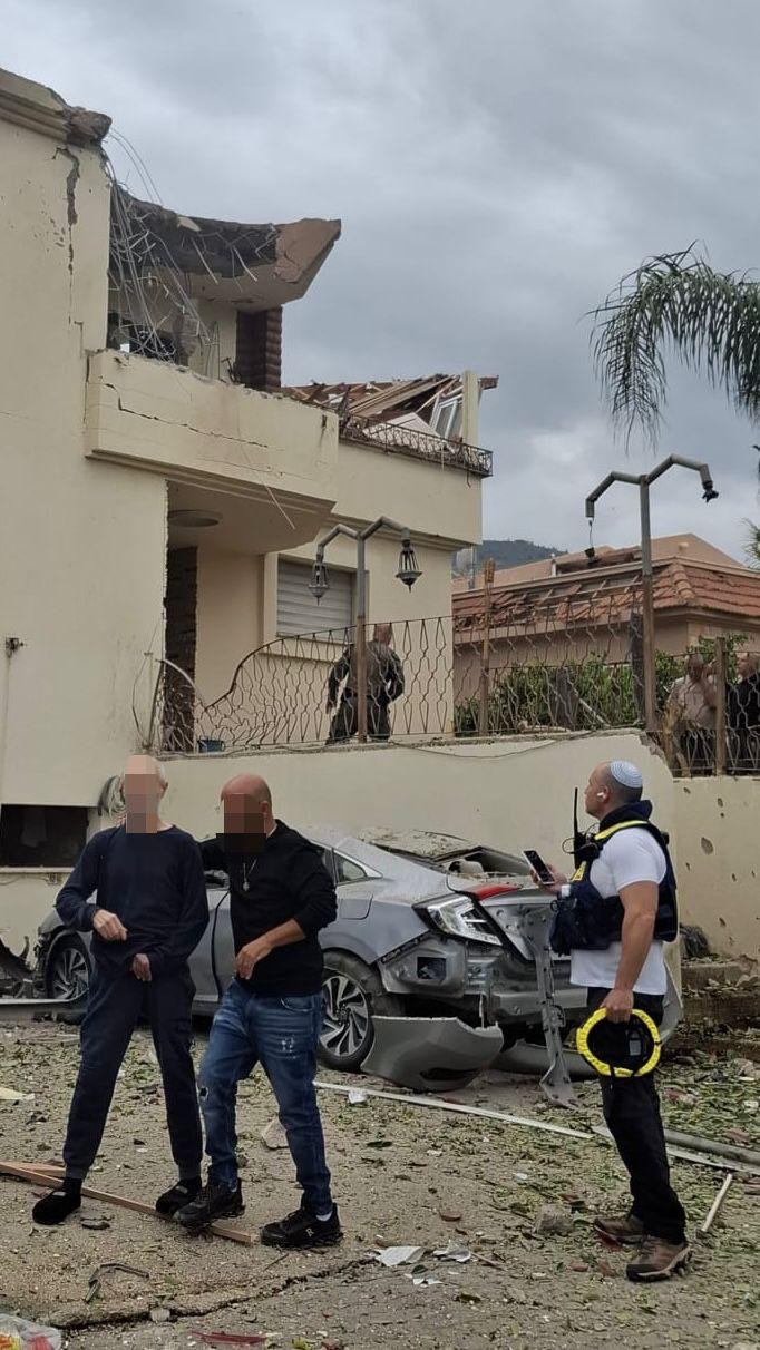 سقوط شظايا صاروخية وأضرار في مبنى وسيارات في كريات شمونة - تصوير سلطة الاطفاء