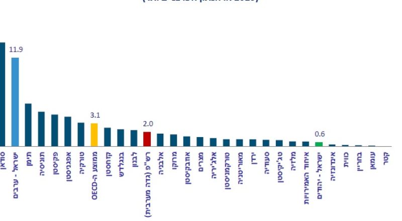 وبحسب التقرير، بلغ معدل جرائم القتل في المجتمع العربي في إسرائيل عام 2025 نحو 11.9 حالة قتل لكل 100 ألف نسمة. وهذا المعدل يضع العرب في إسرائيل في موقع مرتفع جدًا مقارنة بالدول التي شملتها المقارنة، إذ لا تتقدم عليهم سوى السودان والعراق، بينما تأتي دول مثل اليمن، تونس، باكستان، أفغانستان، تركيا، لبنان، المغرب، مصر، الأردن، السعودية، الإمارات، الكويت وقطر بمعدلات قتل أقل.