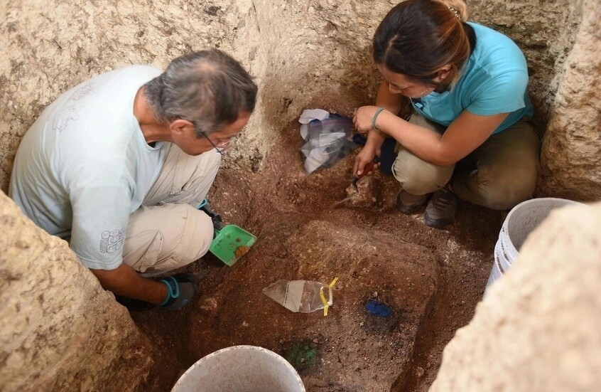 وعثر الباحثون في الموقع على عينات من الأصباغ، هي الأولى من نوعها في أمريكا الوسطى، مرتبة وفق الاتجاهات الرئيسية: الأزرق اللازورد للشمال، الأصفر للجنوب، الأخضر للشرق، وأصداف عرق اللؤلؤ للغرب، كما استخدمت الصبغة الحمراء في الأصل.