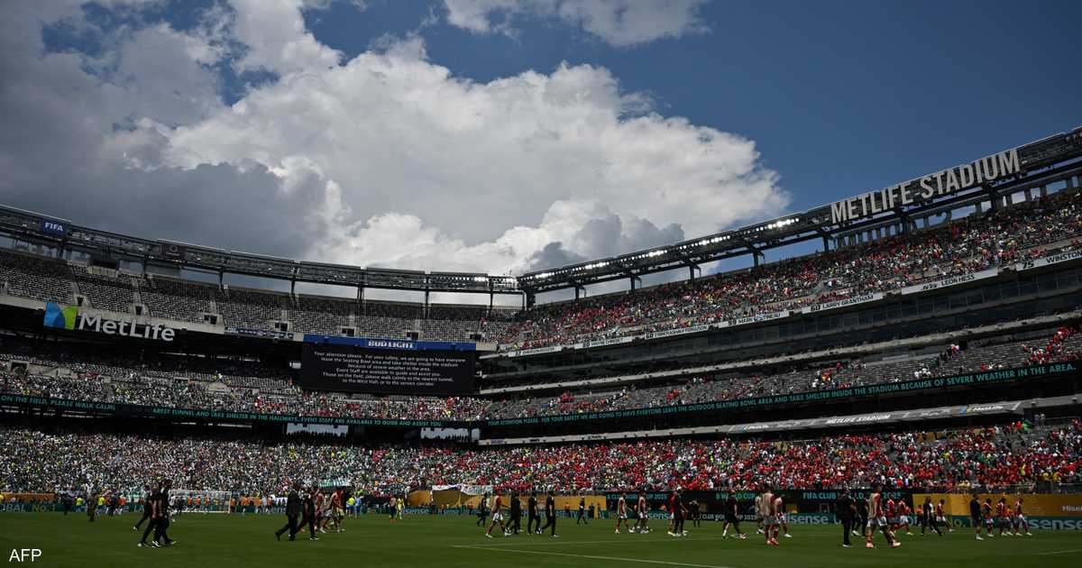 وطلب المذيع الداخلي بملعب "ميتلايف" من الجماهير مغادرة الملعب بسبب الطقس السيئ، حيث كانت النتيجة تشير إلى تقدم الفريق البرازيلي بهدفين دون رد.