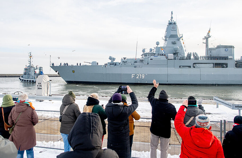 الفرقاطة الألمانية "زاكسن" أثناء مغادرتها ميناء فيلهلمسهافن شمال غرب ألمانيا للمشاركة في مهمة تستغرق عدة أشهر / Gettyimages.ru