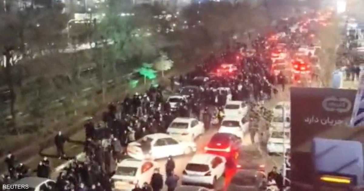 تُظهر مقاطع فيديو متداولة على وسائل التواصل الاجتماعي محتجين يشعلون النار في كشك للشرطة في طهران، خلال تظاهرات امتدت إلى عدة مدن في أنحاء إيران.