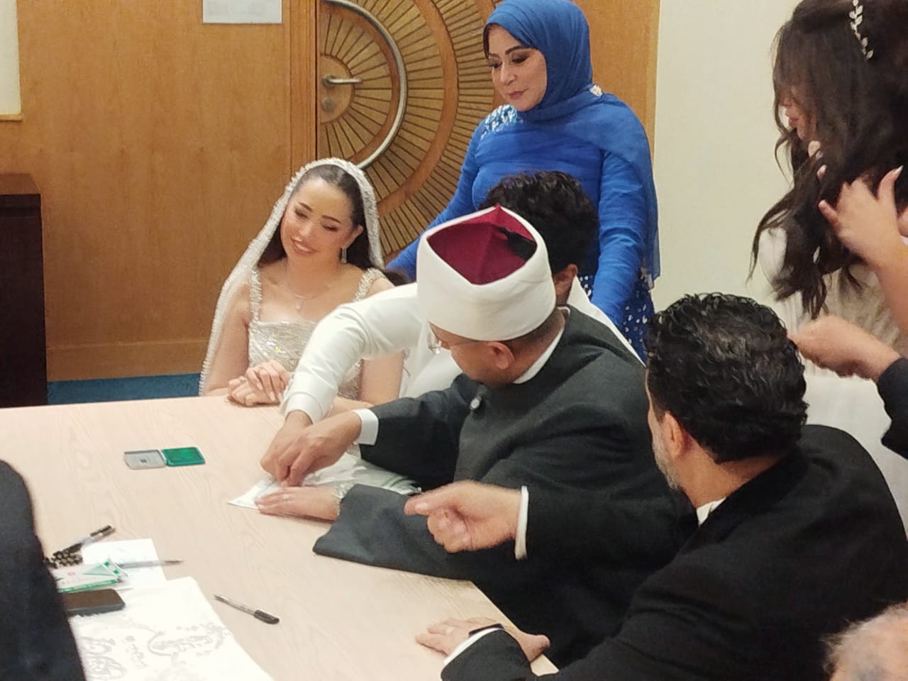 رصدت كاميرا اليوم السابع لحظة عقد قران النجم احمد جمال والفنانة فرح الموجى في حضور والد العروس المايسترو د. محمد الموجي والموزع الموسيقي وسام عبد المنعم والمنتج ياسر الحريرى وأسرة العروسين وشفيق الفنان احمد جمال خالد جمال، حي.