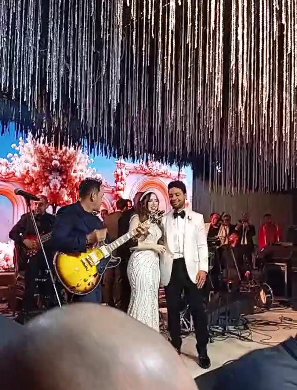 حرص المطرب تامر عاشور على مشاركة أحمد جمال وفرح الموجي فرحتهما بحفل زفافهما، وغنى مجموعة من أغانيه خلال الحفل.