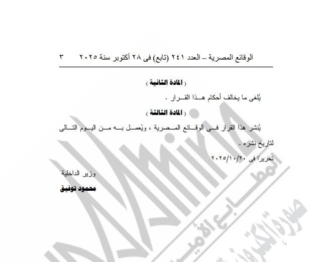 يلغى ما يخالف أحكام هذا القرار ( المادة الثالثة ) وينشر هذا القرار في الوقائع المصرية ، ويعمل به من اليوم التالى لتاريخ نشره