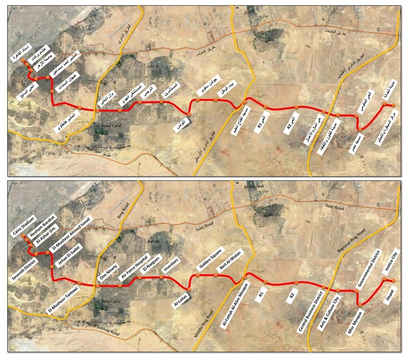 ويمتد المشروع من محطة الاستاد بمدينة نصر وحتى مركز السيطرة والتحكم لمشروع المونوريل بالعاصمة الإدارية الجديدة، بطول 56.5 كم ويشتمل على 22 محطة ويتم تنفيذه من خلال تحالف شركات (ألستوم – أوراسكوم – المقاولون العرب).