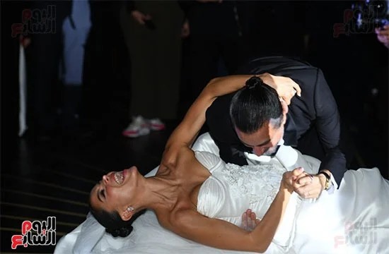 كعادة الأفراح وهو رقص العروسين على أغانى رومانسية، قام المخرج هادي الباجوري والفنانة هايدي خالد بأداء رقصة رمانسية ولكن انتهيت بموقف محرج حيث سقطت هايدي خالد أثناء رقصها معه وسقط هو أيضا، ولكنهما نجحا في تجاوز الإحراج بالضحك والمزاح.