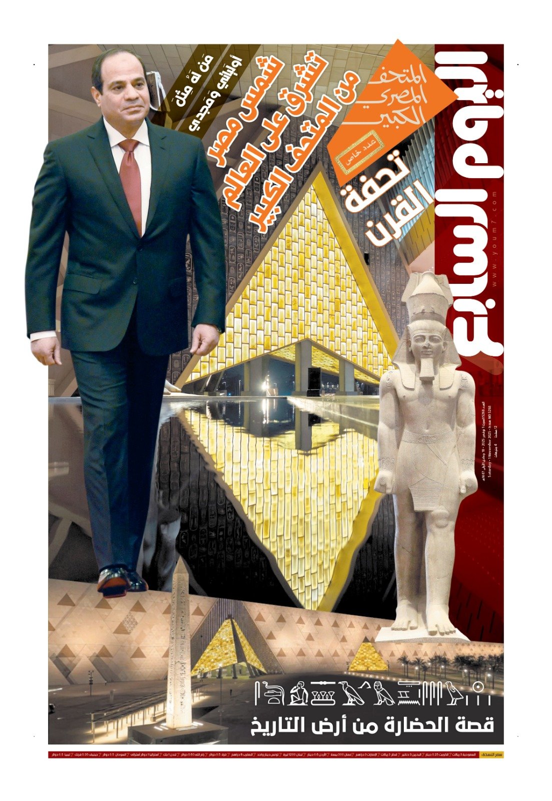 وفي العدد أيضا، كتب الكاتب الصحفي عبد الفتاح عبد المنعم، رئيس تحرير اليوم السابع، مشيدا بهذا الإنجاز الكبير وبدور الرئيس السيسي صانع وحدة المصريين في المشروعات الكبرى، وأن هذا المتحف هو شاهد عيان على استقرار دولة المؤسسات في مصر.