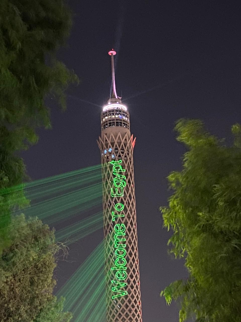 إضاءة برج القاهرة برسائل ترحيب