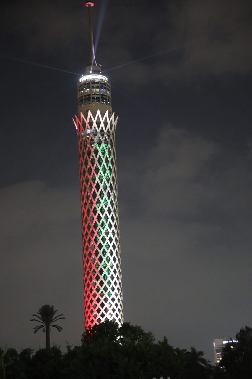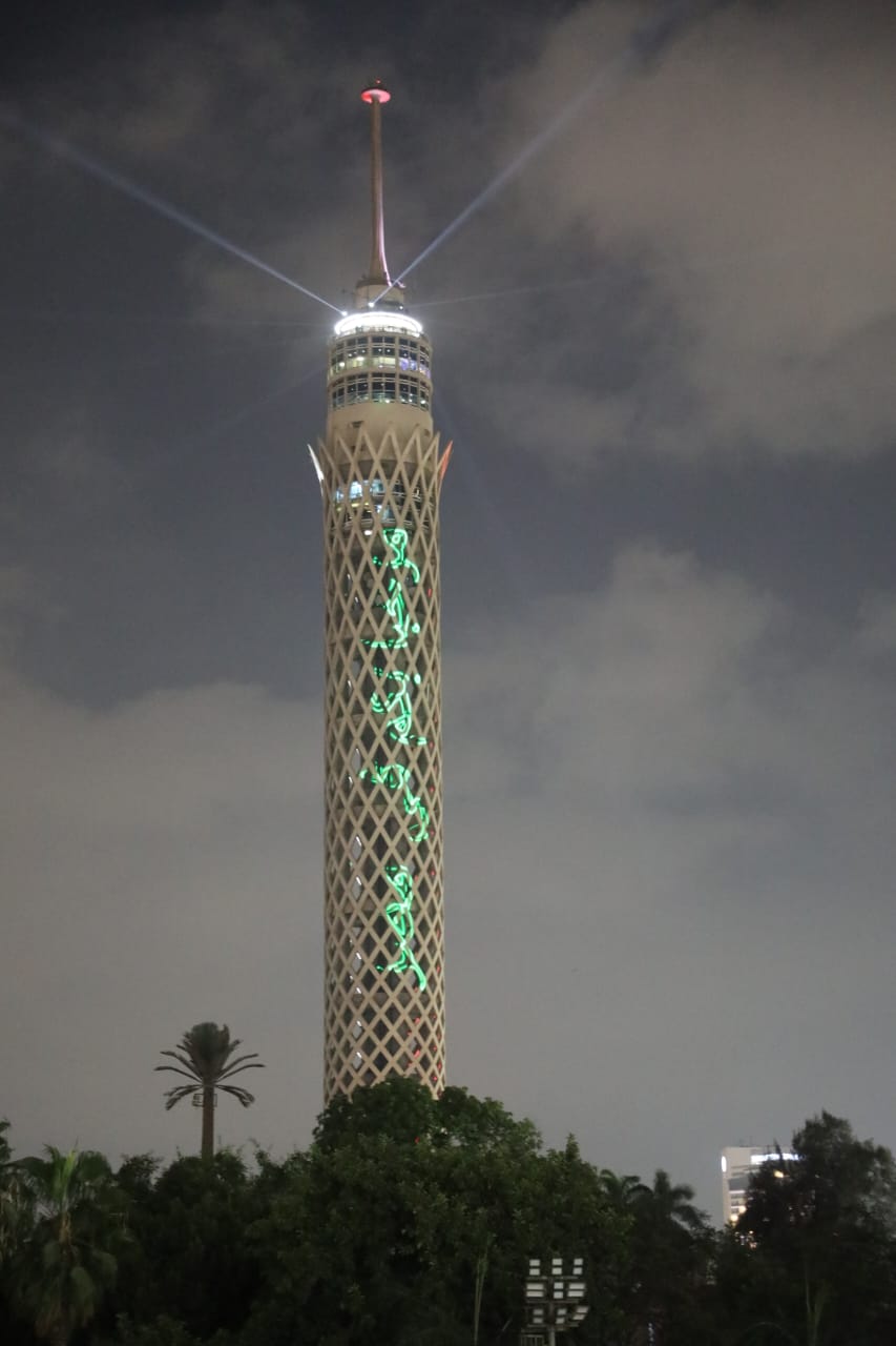 إضاءة برج القاهرة برسائل ترحيب وعبارات احتفالية
