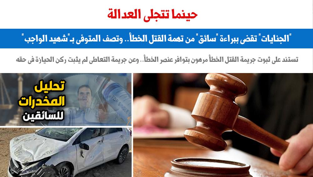 الجنايات تقضى ببراءة سائق من تهمة القتل الخطأ وتصف المتوفى بشهيد الواجب