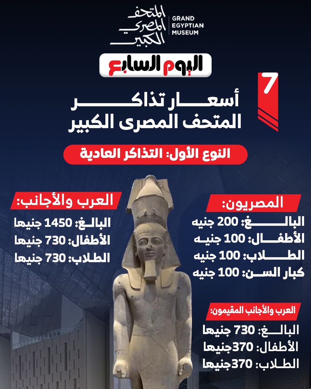 وجاءت أسعار التذاكر المقرره بعد الافتتاح الرسمي للمتحف المصري الكبير كالآتى: