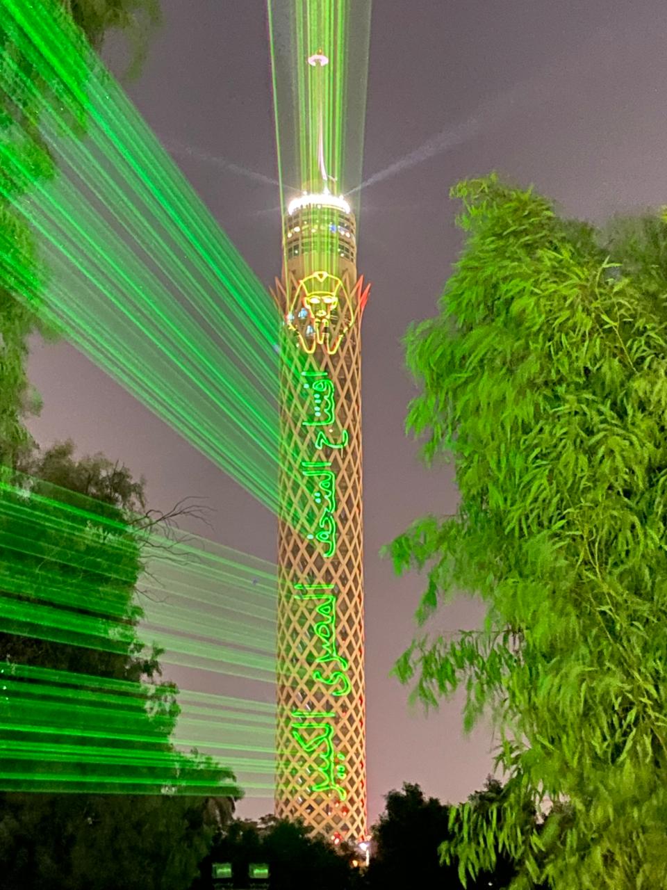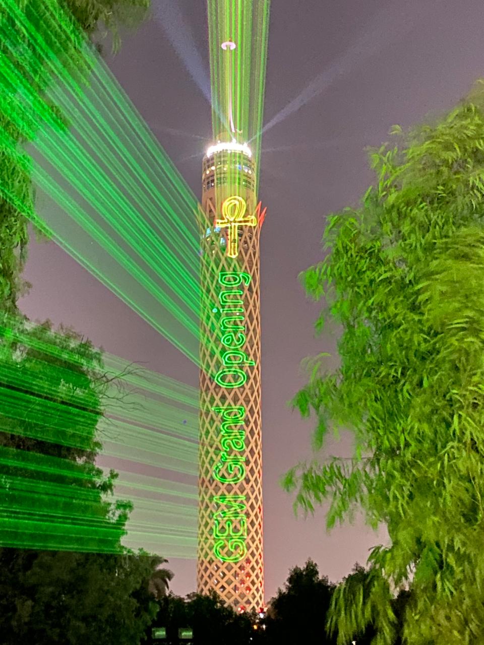 أكد الدكتور إبراهيم صابر محافظ القاهرة، أنه بالتنسيق مع مسئولى برج القاهرة تم لليوم الثانى إضاءة البرج بعبارة افتتاح المتحف المصري الكبير، و GEM Grand Opening، بالإضافة لعلم مصر، وذلك ضمن احتفالات محافظة القاهرة بافتتاح المتحف المصرى الكبير .