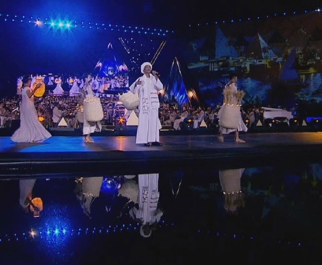 مقدماً شرحاً لكلمات الأغنية التي أداها باللغة النوبية: