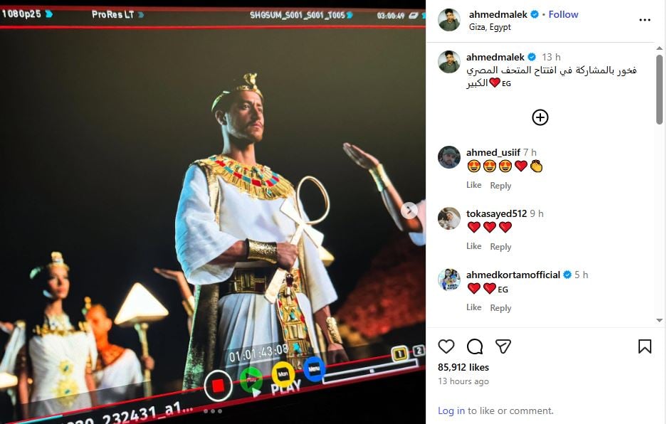 شارك الفنان أحمد مالك في حفل افتتاح المتحف المصري الكبير، معربا عن فخره بالمشاركة في هذا الحدث التاريخي الذي يبرز التراث والحضارة المصرية العريقة.