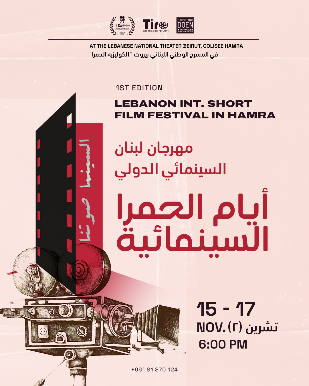 أعلنت جمعية تيرو للفنون ومسرح إسطنبولي عن اطلاق مهرجان لبنان السينمائي الدولي للأفلام القصيرة في المسرح الوطني اللبناني في سينما الكوليزيه التاريخية في بيروت تحت شعار "أيام الحمرا السينمائية"، التي ستقام ابتداء من 15 نوفمبر الجاري 2025 ، وحتى 18 منه، بمشاركة مجموعة من الأفلام القصيرة الروائية والوثائقية والتحريك من 18 دولة هي المكسيك، لبنان، عمان، الامارات، مصر، تركيا، الأرجنتين، فلسطين، البحرين، المانيا، العراق، تونس، الجزائر، سوريا، فرنسا، ايران، المغرب، ايرلندا ،حيث يتجمّع الجمهور وصنّاع الأفلام والنقاد في أجواء تفاعلية حيّة تعكس حضور السينما المستقلة، ودورها في إعادة إنتاج المعنى داخل مدينة بيروت.