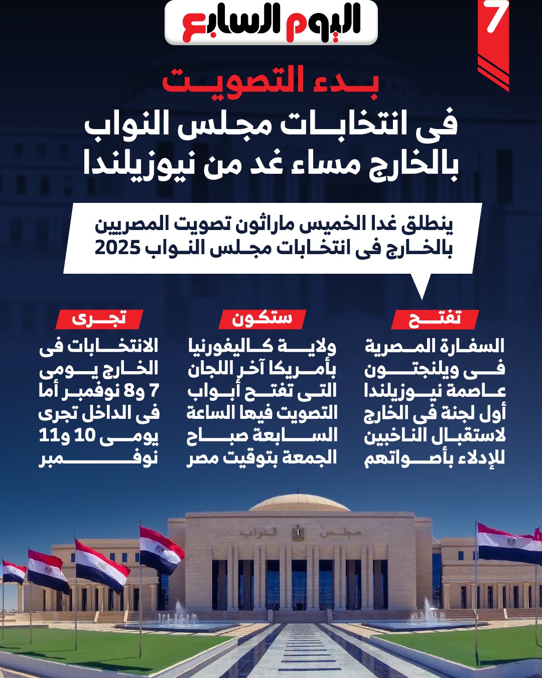 أعلنت الهيئة الوطنية للانتخابات برئاسة القاضي حازم بدوى، انطلاق عمليات تصويت المصريين بالخارج في انتخابات مجلس النواب 2025 اعتبارا من مساء غد، الخميس، حيث تفتح السفارة المصرية في ويلنجتون عاصمة نيوزيلندا، أول لجنة فى الخارج لاستقبال الناخبين للإدلاء بأصواتهم، وفقاً لفارق التوقيت مع مصر والمقدر بـ11 ساعة تقريبا، وتكون ولاية كاليفورنيا بأمريكا آخر اللجان التي تفتح أبواب التصويت فيها الساعة السابعة صباح الجمعة بتوقيت مصر.