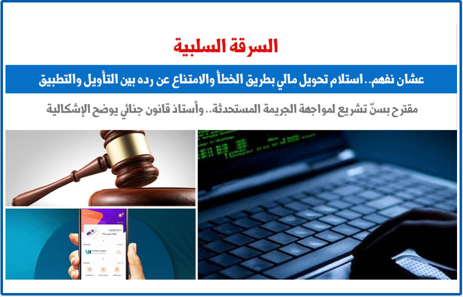 عشان نفهم.. استلام تحويل مالي بطريق الخطأ والامتناع عن رده بين التأويل والتطبيق.. "فراغ تشريعى" يحتاج لتدخل فورى.. ومقترح بسن تشريع يحمل مسمى "السرقة الإلكترونية السلبية".. وأستاذ قانون جنائى يوضح الإشكالية