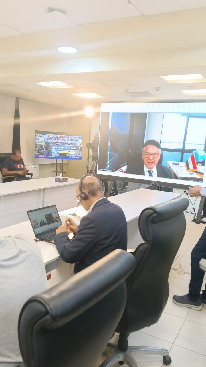 وأجر ى القاضى أحمد بندارى اتصالا عبر الفيديوكونفرانس مع السفير جورج عازر ، وذلك لإطلاع الرأي العام على مستجدات بدء التصويت المصريين بالخارج في اليوم الأول من انتخابات مجلس النواب.
