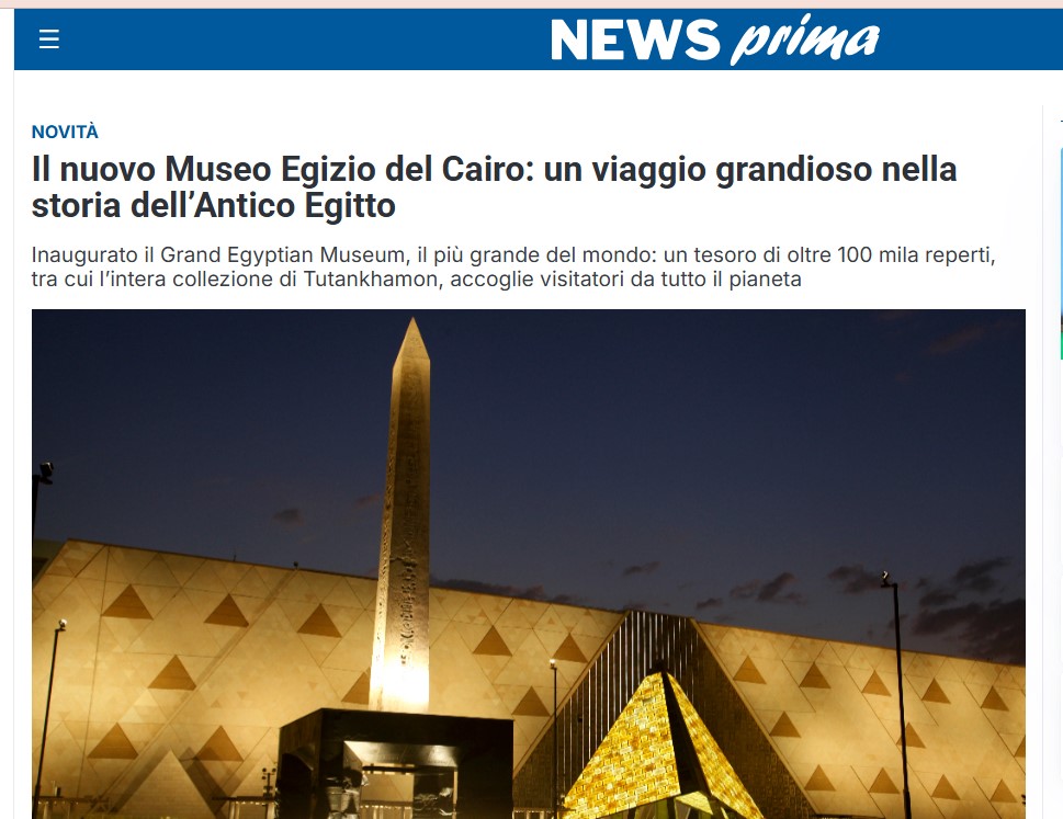 أبرزت صحيفة بريما الإيطالية المتحف المصرى الكبير الذى يعد أكبر متحف فى العالم مخصص بالكامل للحضارة المصرية القديمة ،وقالت إنه لا يُعد المتحف المصري الكبير مجرد مؤسسة لعرض الآثار، بل يمثل رمزًا لنهضة ثقافية وسياحية، تعكس مدى مكانة مصر كوجهة عالمية.