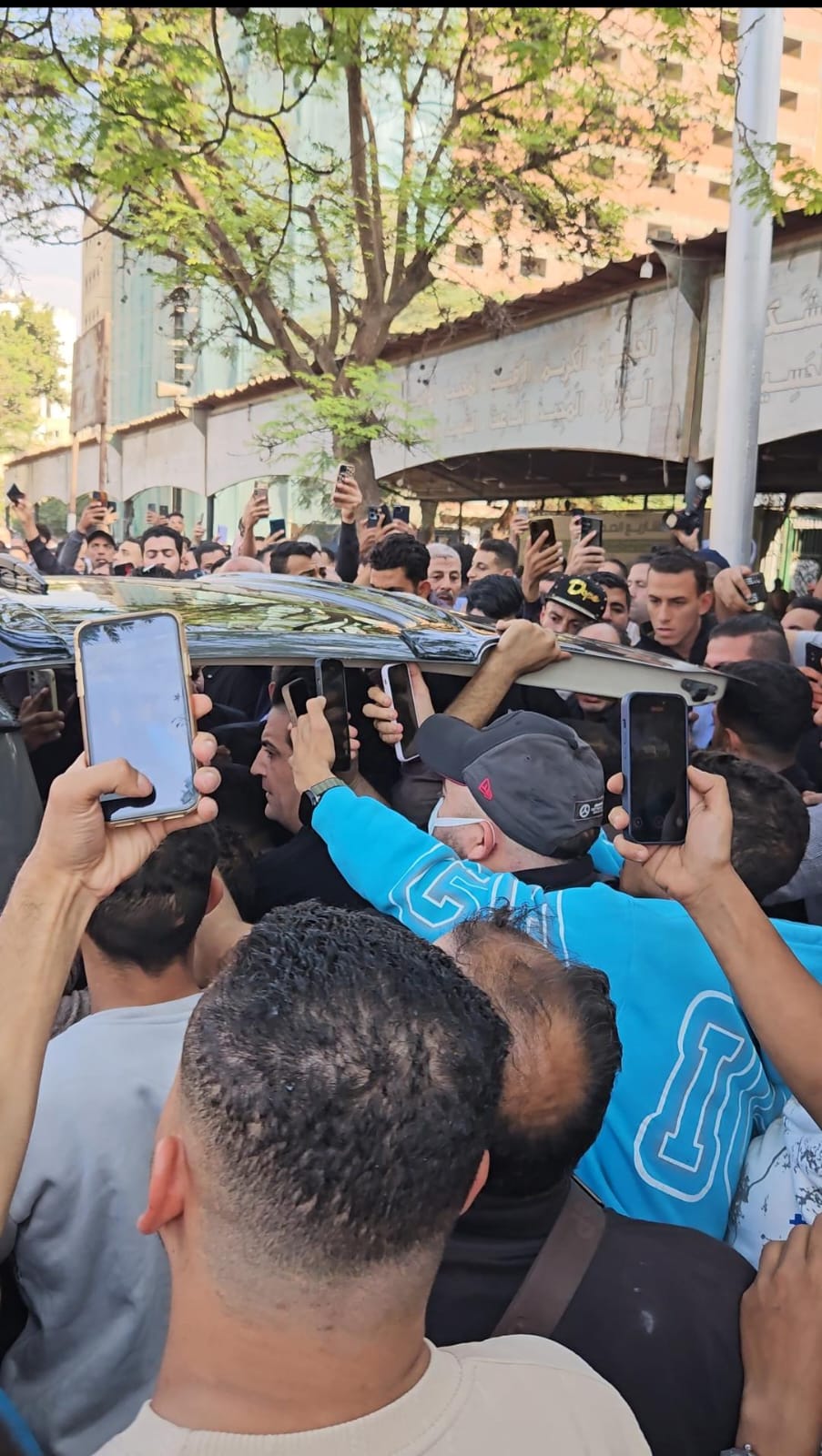 تزاحم وتدافع على محمد رمضان أثناء تشييع جنازة والده.. صور