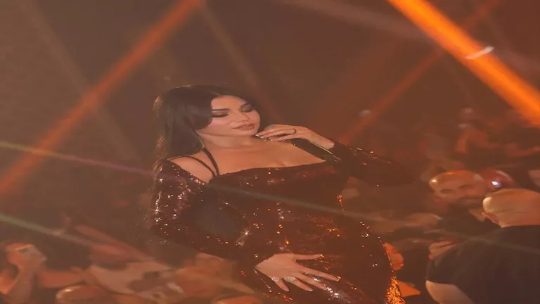 فستان جريء بفتحة ساق.. هيفاء وهبي تحتفل بنجاح حفلها في عمان