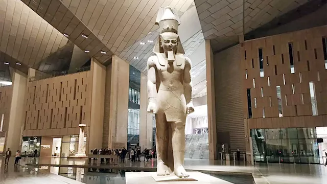 جدير بالذكر أن المتحف المصري الكبير يعد أكبر متحف في العالم مخصص لحضارة واحدة "حضارة مصر القديمة"، ويمتد على مساحة 490 ألف م2، ويضم مدخلًا رئيسًا بمساحة نحو 7 آلاف م2، به تمثال للملك رمسيس الثاني، كما يضم أكثر من 57 ألف قطعة أثرية تروي تاريخ مصر عبر العصور، بالإضافة إلى الدرج العظيم الذي يمتد على مساحة حوالي 6 آلاف م2، بارتفاع يعادل 6 طوابق.