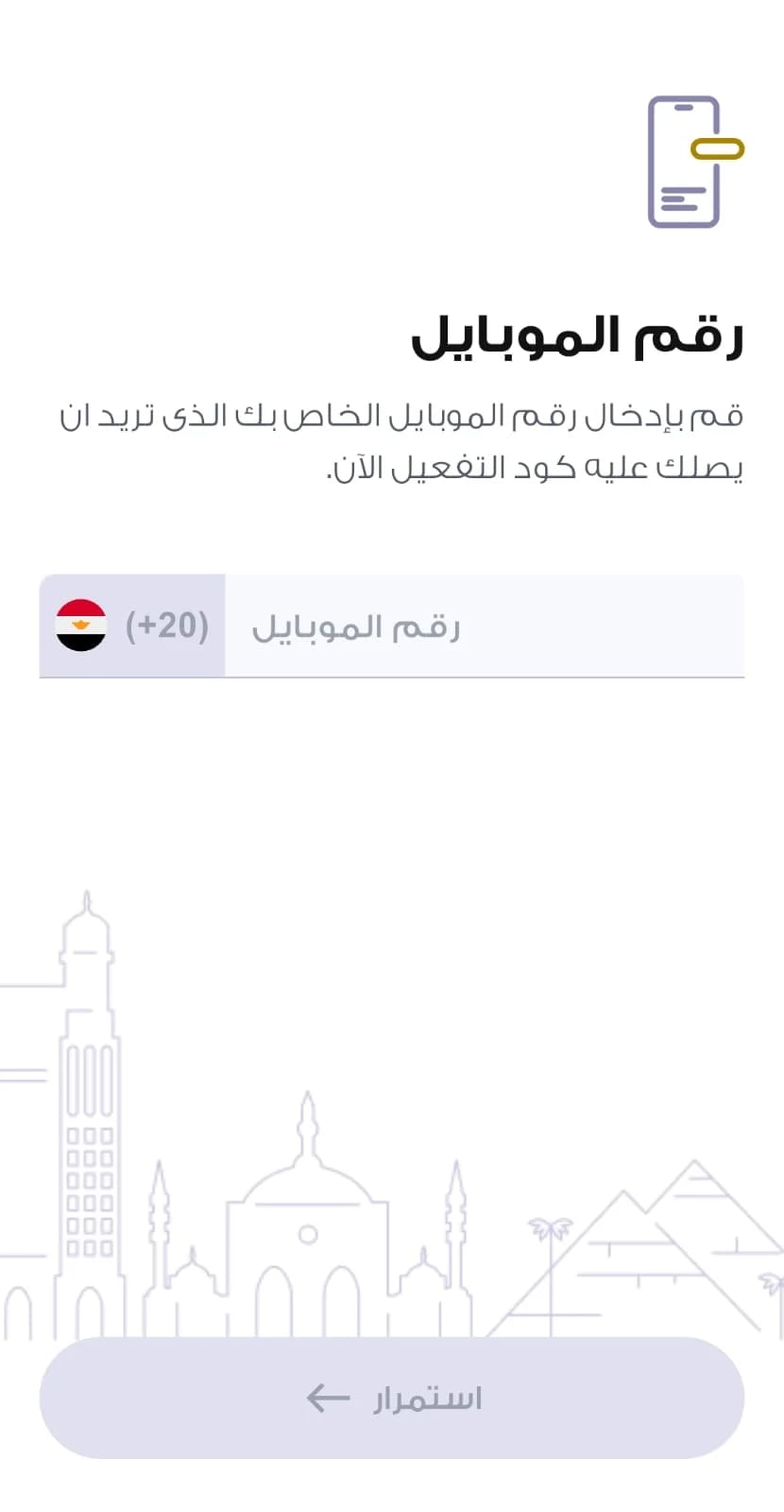- بعد تحميل التطبيق يتم إدخال الهاتف المحمول ثم الرقم القومى