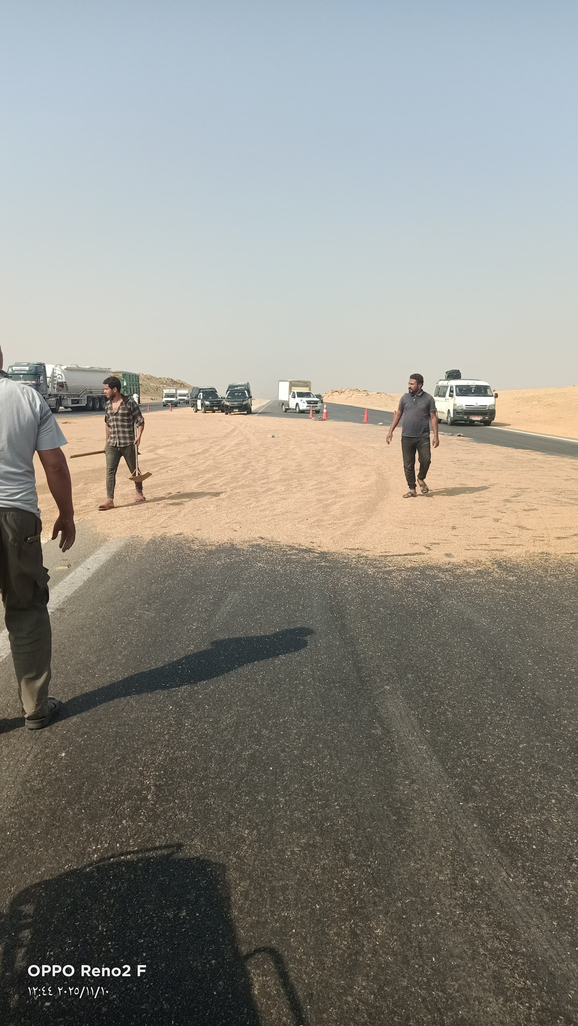كانت شرطة النجدة بمحافظة الفيوم تلقت بلاغا بوقوع حادث إنقلاب سيارة نقل محملة بالقمح بطريق القاهرة أسيوط الصحراوي الغربي بالقرب من دخلة طهطا، ووجود مصابين، وعلي الفور انتقلت قوة من الشرطة وسيارات الإسعاف الي مكان الحادث، وتبين إصابة شخصين، وتم نقل المصابين الي مستشفي التأمين الصحي بالفيوم، وإزالة آثار الحادث، وتسيير حركة المرور بالطريق، وتحرر محضر بالواقعة وتولت النيابة التحقيق.
