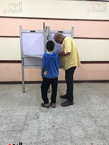 وبملامح يملؤها الفخر شارك طفل والده في انتخابات النواب مرددا " بتعلم من أبويا علشان دا واجب وطنى".
