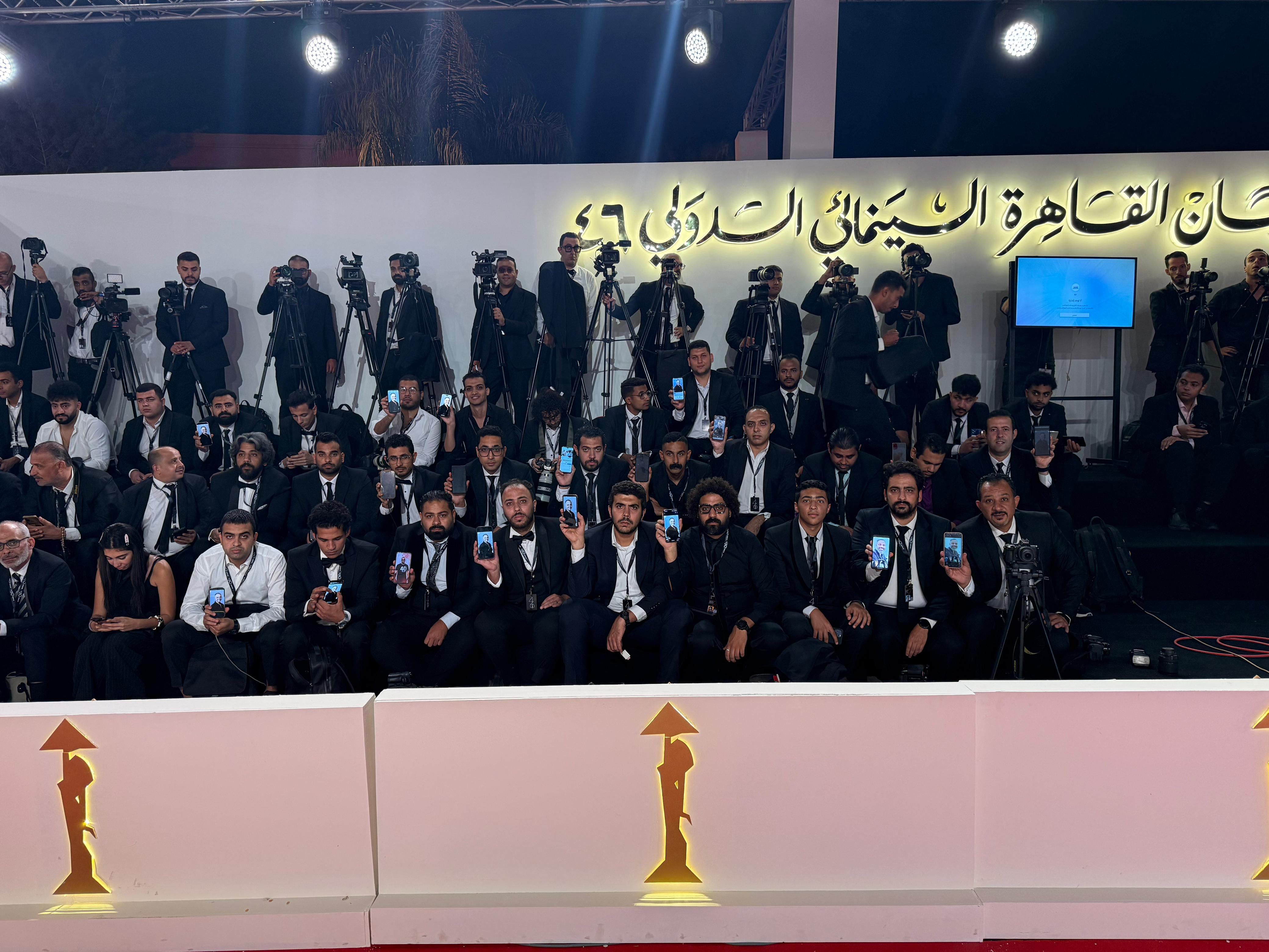 صحفيوا ومصوروا مهرجان القاهرة السينمائي يرفعون صورة ماجد هلال قبل انطلاق حفل الافتتاح