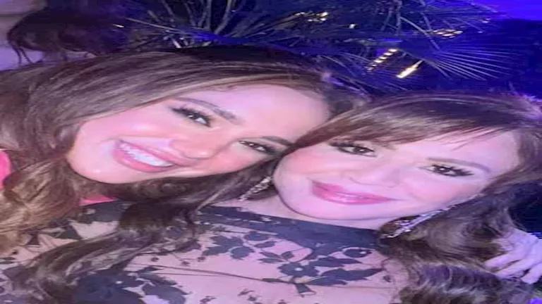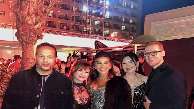 وظهرت بصحبة النجمة ريهام حجاج وزوجها رجل الأعمال محمد حلاوة ورنا رئيس وعدد من الأصدقاء.