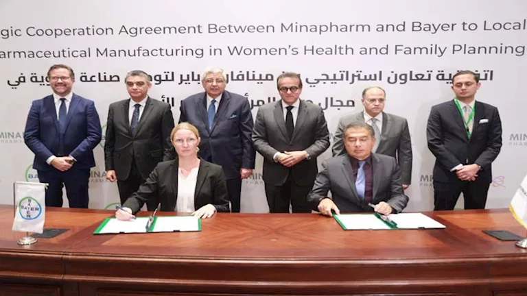 شهد الدكتور خالد عبدالغفار، نائب رئيس مجلس الوزراء للتنمية البشرية ووزير الصحة والسكان، توقيع اتفاقية تعاون بين شركتي "مينا فارم" و"باير" الألمانية لتوطين صناعة الأدوية في مجال صحة المرأة والصحة الإنجابية.