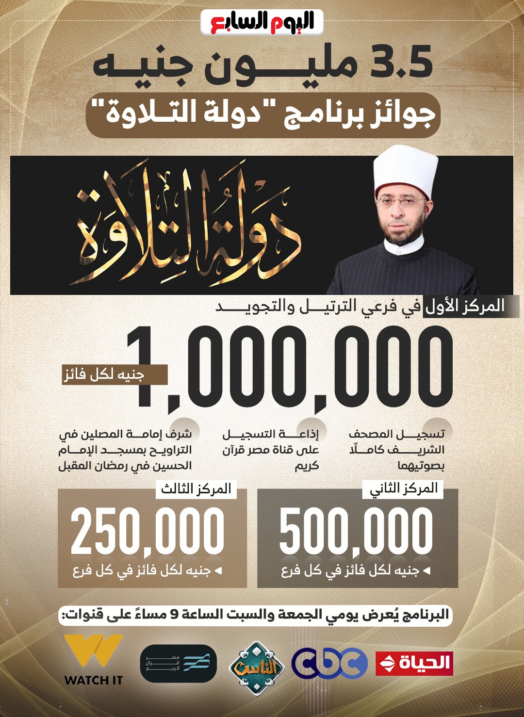 جوائز برنامج دولة التلاوة.. 3.5 مليون جنيه الإجمالي (إنفوجراف)