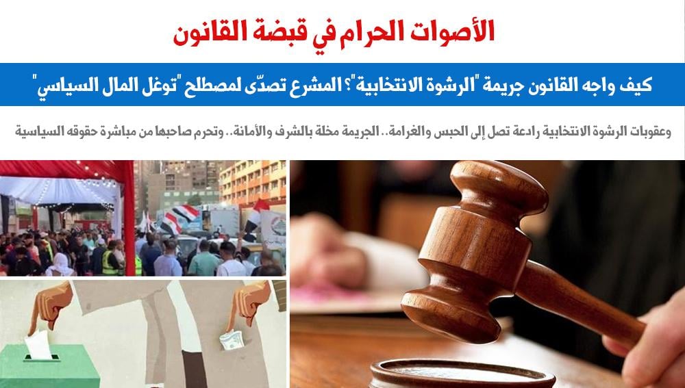 بعد التحذيرات المتتالية.. كيف واجه القانون جريمة "الرشوة الانتخابية"؟.. المشرع تصدى لـمصطلح "توغل المال السياسى".. وعقوبات الرشوة الانتخابية رادعة تصل للحبس والغرامة.. الجريمة مخلة بالشرف والأمانة.. وتحرم صاحبها من مباشرة حقوقه السياسية