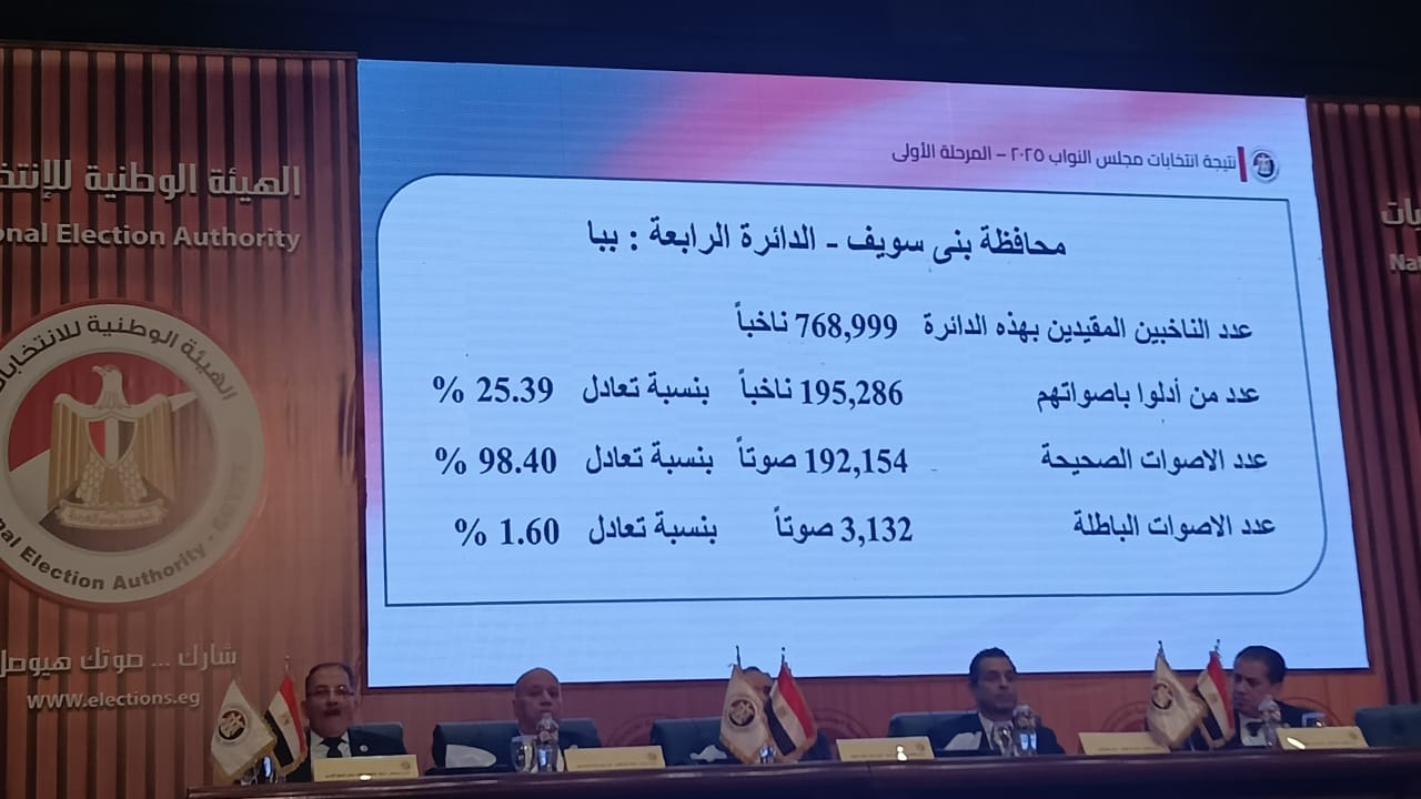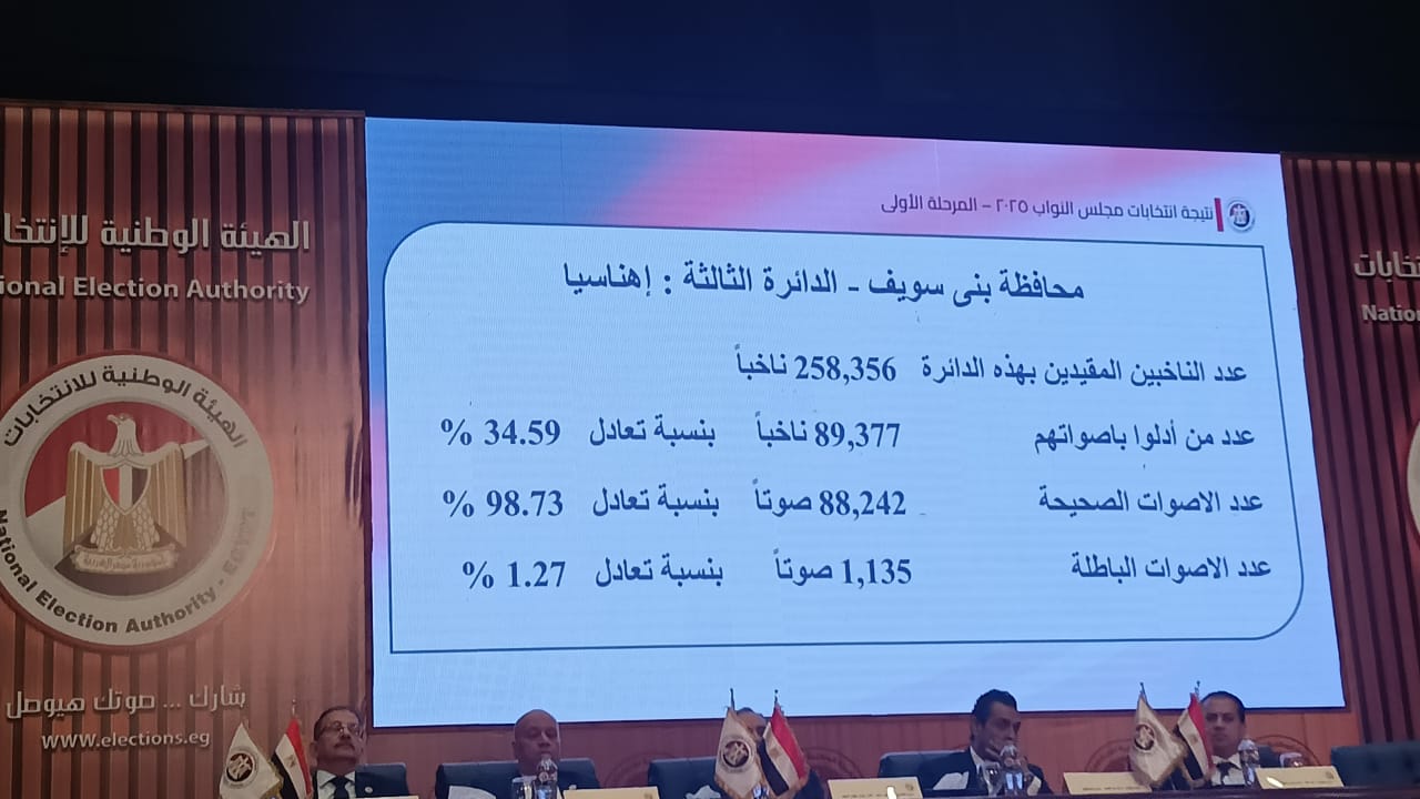 أعلنت الهيئة الوطنية للانتخابات ، برئاسة القاضي حازم بدوي، النتيجة الرسمية من انتخابات مجلس النواب 2025، عن أعداد أصوات الباطلة والصحيحة خلال التصويت على 3 دوائر فى بنى سويف وهم: