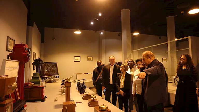 كما قام الوفد بزيارة متحف السكة الحديد تفقدوا خلالها عدد من النماذج والوثائق والخرائط والمجسمات لمراحل تطور النقل والسكك الحديدية.