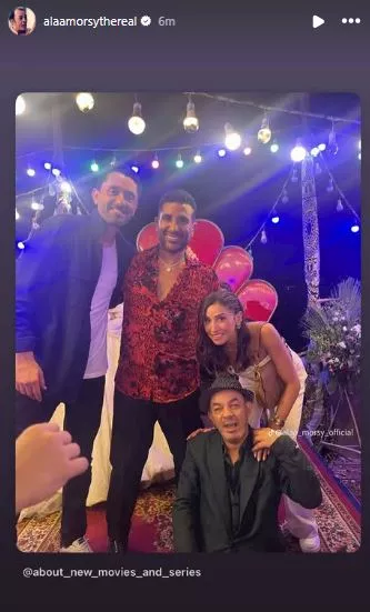 نشر الفنان علاء مرسي، صورة تجمعه بالفنان كريم محمود عبد العزيز والفنان أحمد سعد والفنانة دينا الشربيني عبر خاصية الاستوري على إنستجرام، وكانت الصورة من كواليس تصوير فيلم "طلقني" المقرر عرضه خلال الفترة المقبلة.